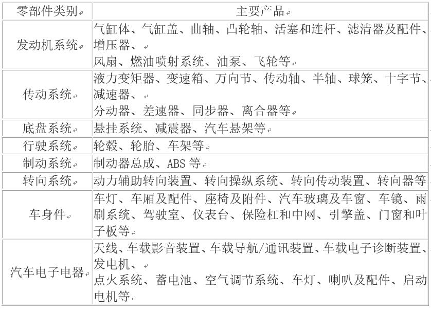汽車整車的零部件數(shù)量眾多,按功能劃分通常分為以下類別: