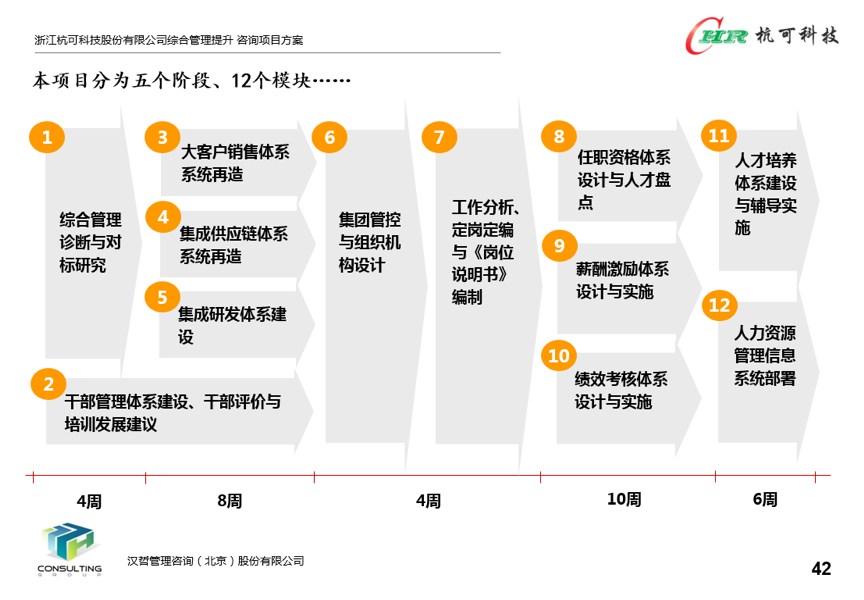 整個(gè)項(xiàng)目計(jì)劃歷時(shí)八個(gè)月,將圍繞四個(gè)目標(biāo),建成四大體系,構(gòu)建四支隊(duì)伍,項(xiàng)目的落地實(shí)施將助力杭可科技走上國(guó)際化、規(guī)?;c職業(yè)化之路,將注定在企業(yè)的發(fā)展歷史上寫(xiě)下濃墨重彩的一筆。