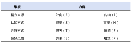 表2 MBTI的四個(gè)維度