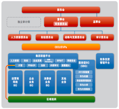 關(guān)于華為的組織架構(gòu)的表述,事業(yè)部、職能部門,以及事業(yè)部與地區(qū)公司關(guān)系的表述,在華為的基本法中可以找到相關(guān)的規(guī)定: