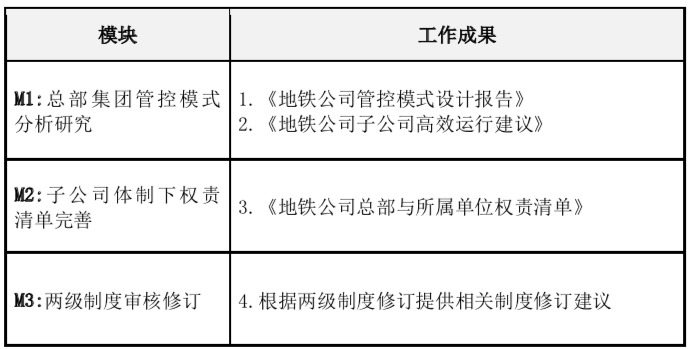 由于分改子之后,地鐵公司總部與所屬單位在公司治理結構、管控模式與定位等方面進行了調(diào)整,由此帶來總部與所屬單位在職責分工、權責劃分等方面也需要進行同步調(diào)整,以便進一步明確總部與所屬單位的權責界面,在此情形下,公司決定聘請外部機構協(xié)助梳理總部與子公司的職責分工與權責邊界,促進分改子體制改革扎實有效的落地。