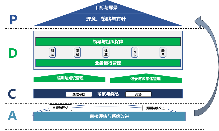 管理體系建設(shè)的最終目的是建設(shè)成具有系統(tǒng)的、有機的、可持續(xù)迭代特點的體系,持續(xù)滿足公司預(yù)期的價值產(chǎn)出,實現(xiàn)客戶、員工、公司相生共贏。