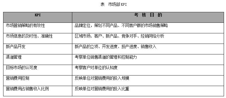 各部門的主管需要根據(jù)單位級(jí)的KPI建立部門級(jí)KPI,并對(duì)相應(yīng)部門的KPI進(jìn)行分解,確定相關(guān)的要素目標(biāo),分析績(jī)效驅(qū)動(dòng)因素(技術(shù)、組織、人),確定實(shí)現(xiàn)目標(biāo)的工作流程,分解出各部門級(jí)的KPI,以便確定評(píng)價(jià)指標(biāo)體系,如,根據(jù)單位級(jí)的“市場(chǎng)領(lǐng)先”戰(zhàn)略,確定部門級(jí)KPI。