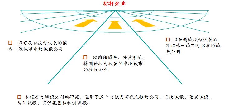 其中,涌現(xiàn)了若干規(guī)模大型、業(yè)務多元、運行規(guī)范的城投公司,結合X公司的地理區(qū)位和所在的城市類型,以及標桿選擇的“適度超前性“原則,本次對標選擇了云南城投、重慶城投、株洲城投、綿陽城投、興瀘集團等五家企業(yè)作為對標對象。